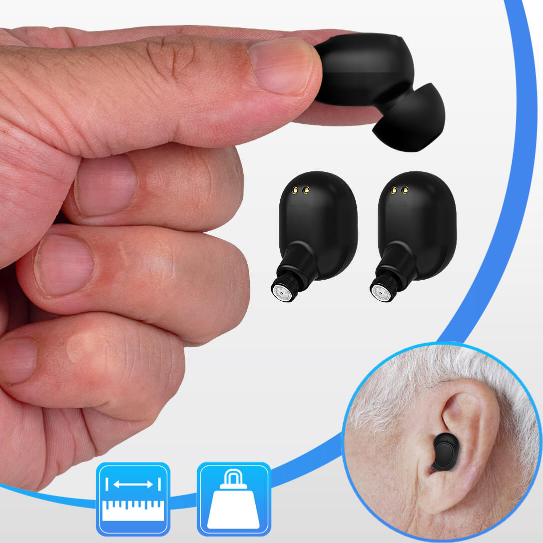 With a sleek, earbud-like design, it looks just like a regular pair of headphones—no one will ever know you’re wearing a hearing aid.