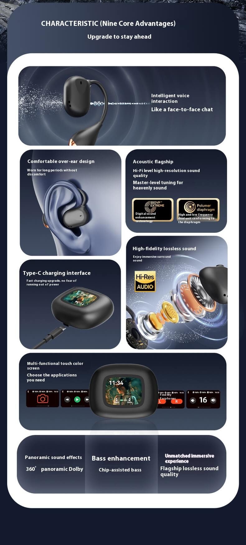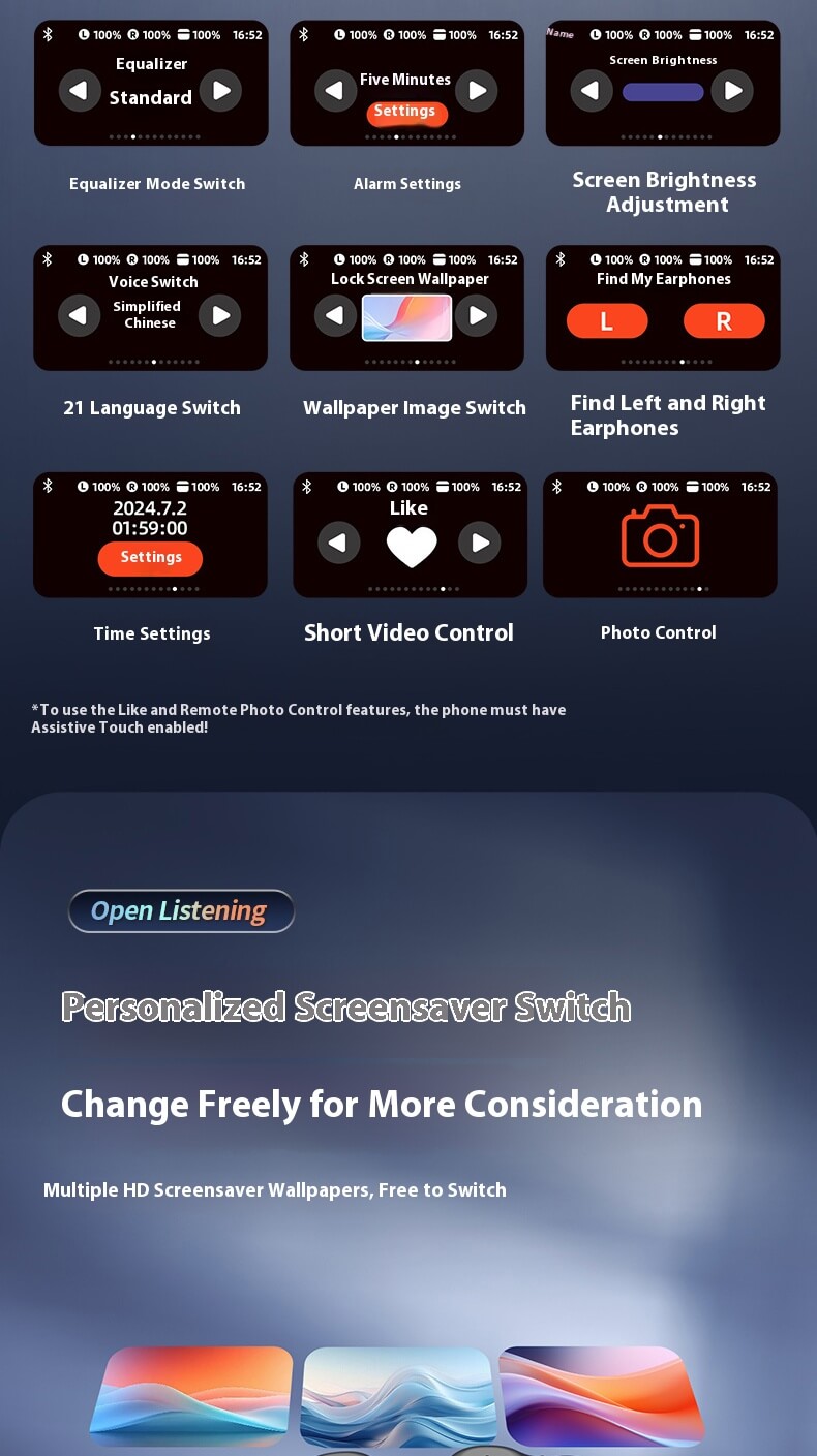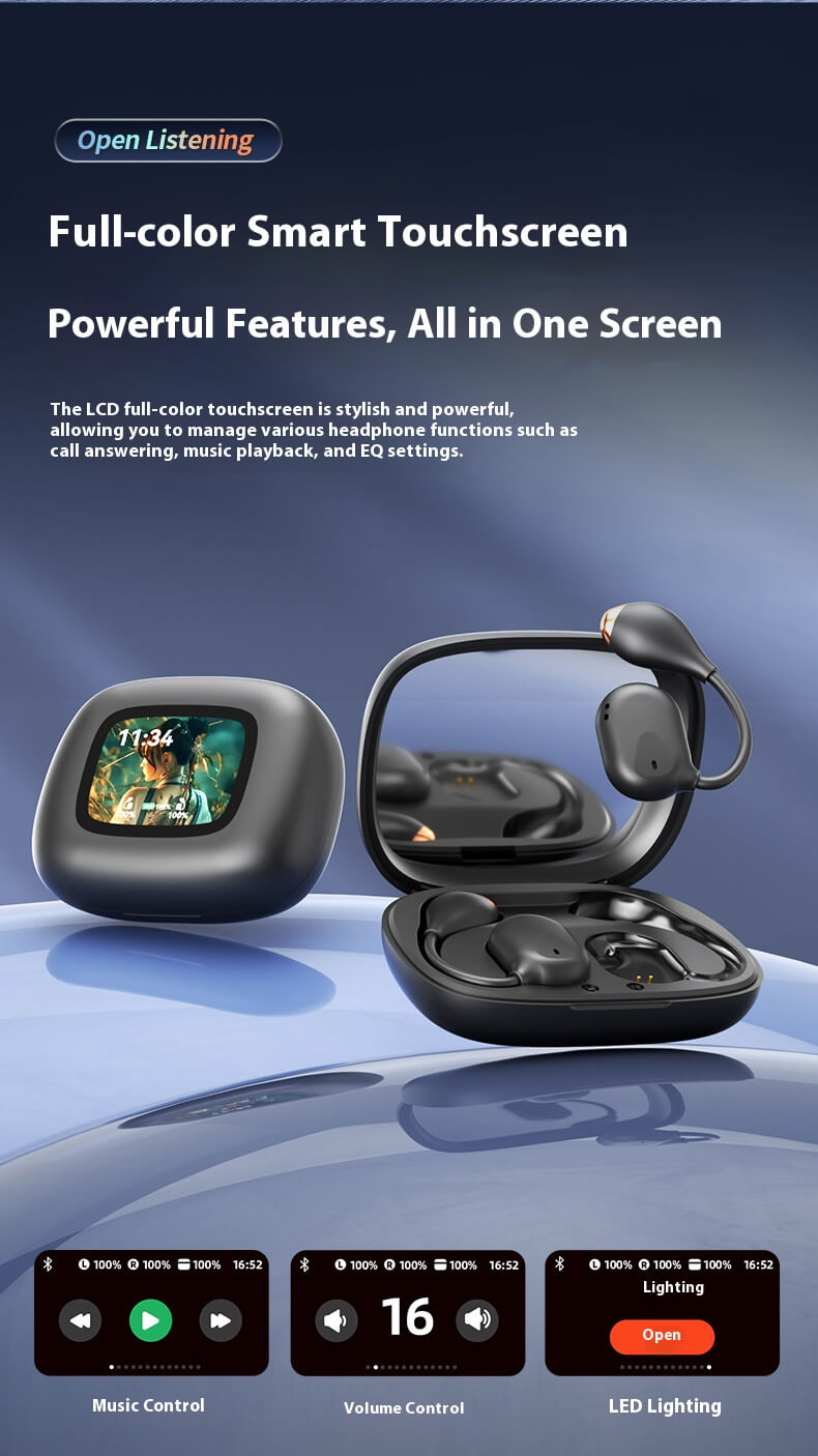Bluetooth 5.4 Chip,ANC + ENC Dual Noise Cancellation,13mm Large Dynamic Driver,Full-Color Smart Touchscreen,Simultaneous translation in 144 languages,Large Capacity Battery