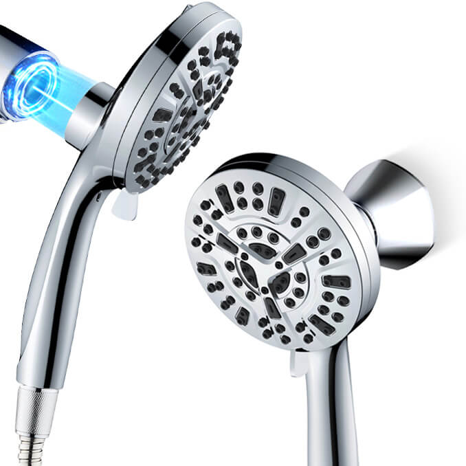 The shower head is made of ABS with a chrome-plated surface as well as durable components for long service life.