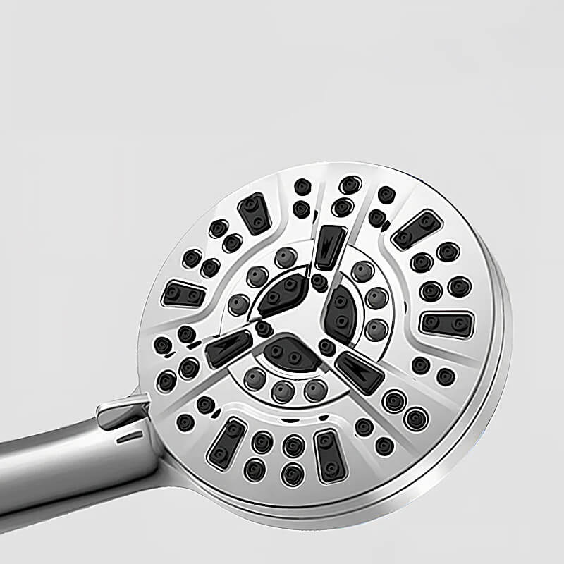 The shower head is made of ABS with a chrome-plated surface.